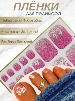 Наклейки для ногтей пленки для педикюра розовые с ромашками