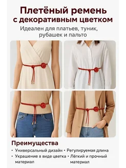 Ремень плетеный с цветком