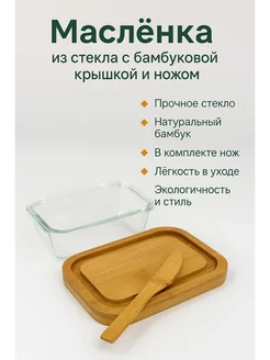 Масленка стекло бамбук и нож