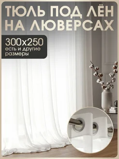 Тюль под лен 1 шт. белый 300х250 на люверсах