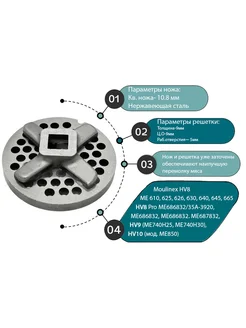 Набор нож и решетка для мясорубки Moulinex ME686832 и др