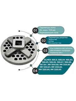 Набор нож ОДНОСТОРОННИЙ и решетка для мясорубки Zelmer