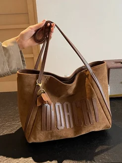 Сумка шоппер больших размеров замша через плечо а4 тоут