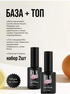 Набор база каучуковая и топ глянцевый для ногтей 10мл