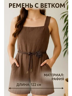 Пояс шнурок с цветком коричневый для платья