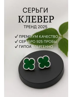 Серьги-гвоздики Van Cliff зелёные стиль люкс