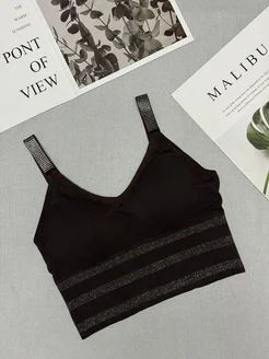 Топ женский одежда спортивная без рукавов кроп майка черный