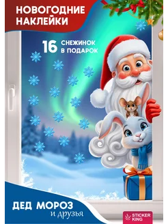 Новогодние наклейки интерьерные большие дед мороз и заяц