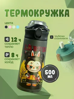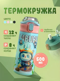 Термокружка с трубочкой Labubu