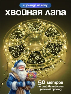 Гирлянда мишура хвойная лапа роса на елку 50 метров