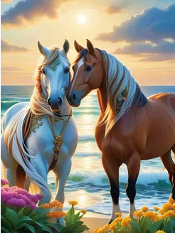 Алмазная мозаика 40х50 на подрамнике,Лошади