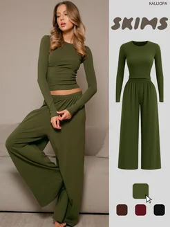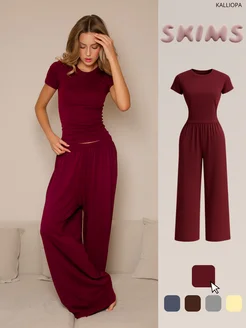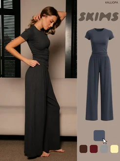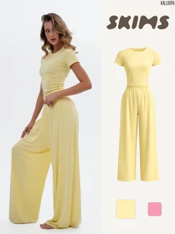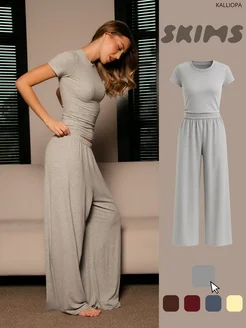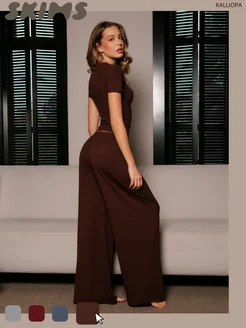 Костюм трикотажный с брюками палаццо и футболкой skims