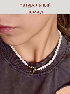 Ожерелье на шею жемчуг натуральный барочный с раковиной