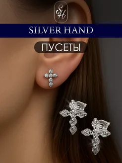 Серьги гвоздики серебро 925 пусеты ювелирные кресты