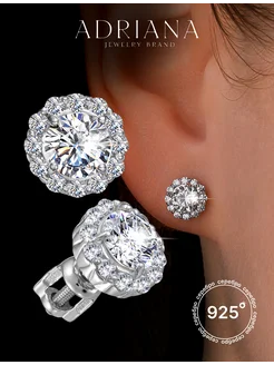 Серьги пусеты серебро 925 пробы гвоздики с фианитами