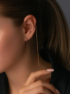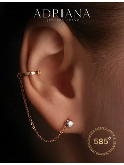 Серьги кафф с цепочкой и пусеты серебро 925 позолоченные