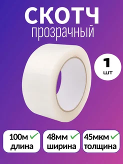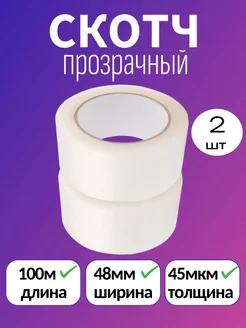 Скотч прозрачный широкий 100 метров 48 мм 2 штуки