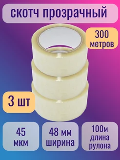 Скотч прозрачный широкий 100 метров 48 мм 3 штуки