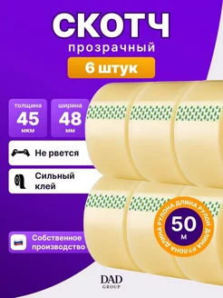 Скотч прозрачный широкий 6 шт в комплекте 50 метров 48 мм