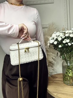сумка маленькая белая летняя плетеная боттега