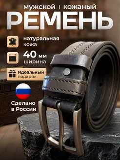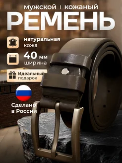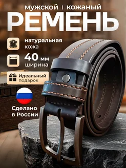 Ремень кожаный, коричневый, для джинсов и брюк, 4 см
