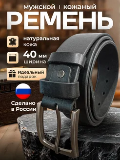Ремень кожаный, черный, для джинсов и брюк, 4 см