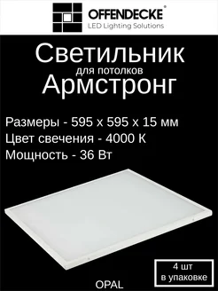 Светильник светодиодный 36Вт 4000К армстронг опал