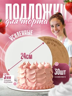 Подложка для торта усиленная 24 см 30 шт деревянная