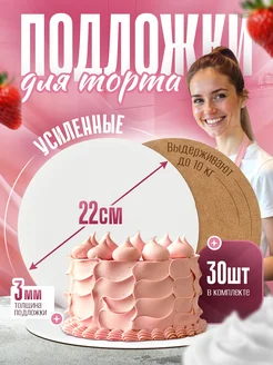 Подложка для торта усиленная 22 см 30 шт деревянная