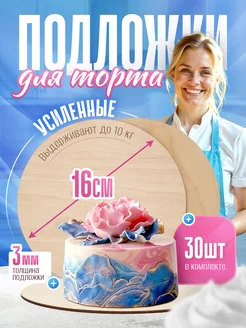 Подложка для торта усиленная 16 см 30 шт деревянная