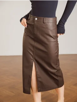Юбка мини карандаш кожаная с разрезом и подкладом