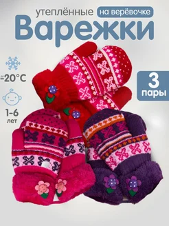 Варежки для малышей нетеряшки на веревочке набор из 3 шт