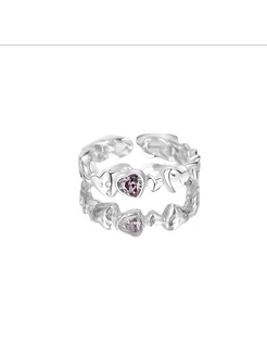 Розовое бижутерное циркониевое сердце открытое кольцо