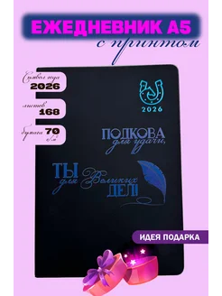Ежедневник датированный А5 с принтом и подковой на удачу