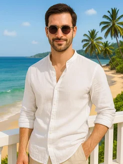 Льняная рубашка летняя без воротника