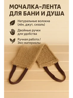 Мочалка-лента из натурального волокна с ручками для бани и д…