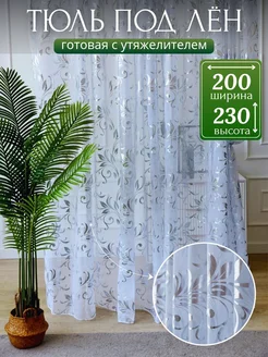 Тюль под лен готовая 200-240 в спальню на шторной ленте