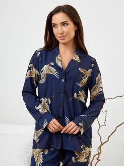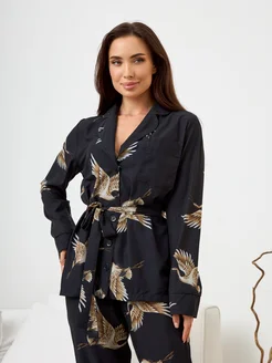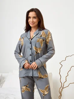 Пижама со штанами и рубашкой домашний костюм шелковый