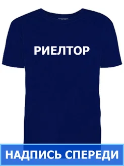 Футболка синяя Риелтор надпись спереди мужская позывной