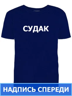 Футболка синяя Судак надпись спереди мужская позывной