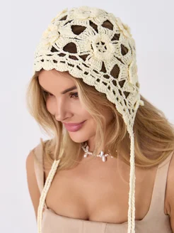 Косынка чепчик вязаная кружевная