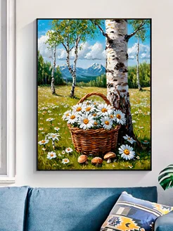 Картина на стену для интерьера 40х50 Ромашки в корзине