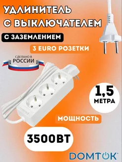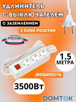 Удлинитель на 3 розетки с заземлением 1,5м с выключателем