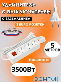 Удлинитель на 3 розетки с заземлением 5м с выключателем