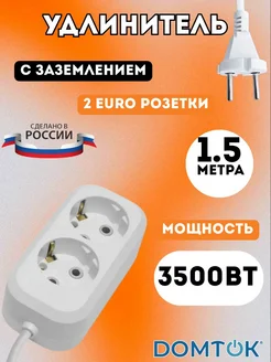 Удлинитель на 2 розетки с заземлением 1,5м 3,5 кВТ