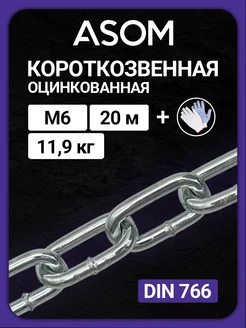 Цепь оцинкованная короткозвенная 6 мм, 20 м