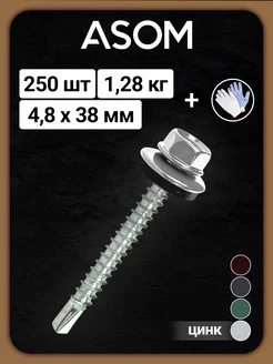 Саморезы кровельные цинк 4,8х38 мм, 250 шт