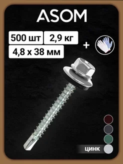 Саморезы кровельные цинк 4,8х38 мм, 500 шт