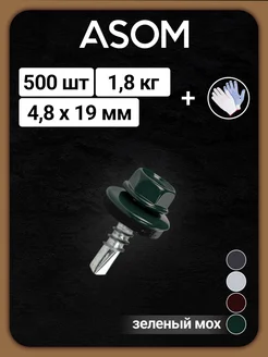 Саморезы кровельные зеленый мох 4,8х19 мм, 500 шт