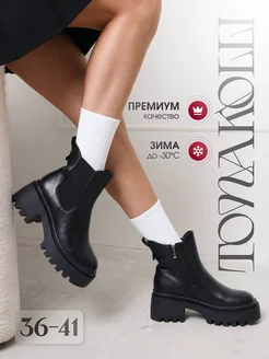 Ботинки зимние черные челси на платформе